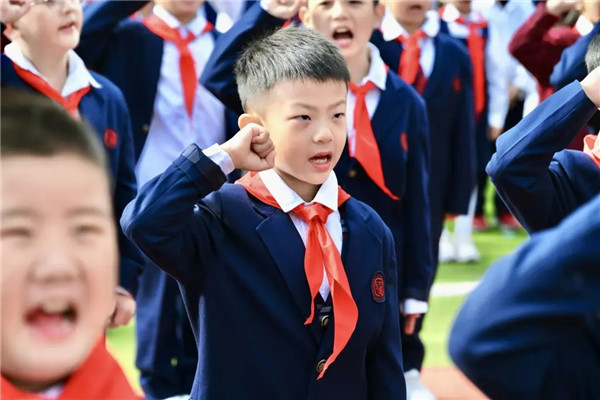 “准备着,为共产主义事业而奋斗!”“时刻——准备着!”在唐源老师的带领下,全体队员高举右拳,呼号声响彻云霄。