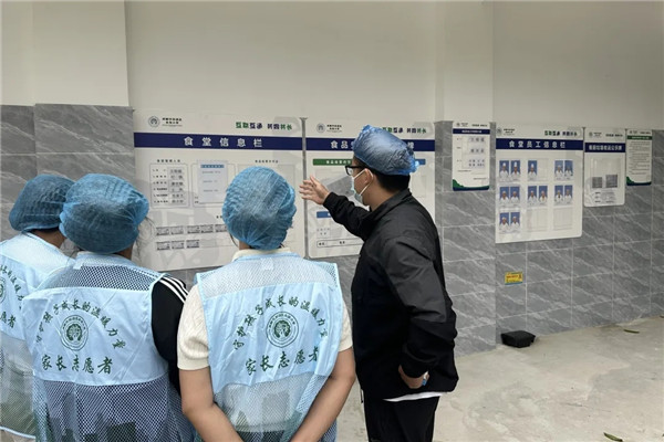 在老师的引导下,家长们参观了学校食堂,详细了解了后厨的卫生状况、食材采购与储存、食品加工流程,以及学生每日餐食的营养搭配情况。