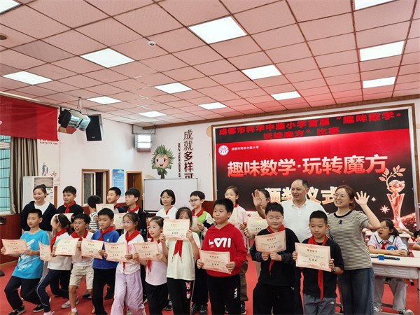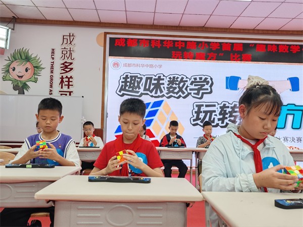 为深化数学核心素养培育,推动“素养导向下的小学数学结构化教学”课题成果落地,通过益智游戏培养学生空间观念,2025年10月17日下午,成都市科华中路小学成功举办了首届“趣味数学·玩转魔方”学生比赛活动。本次活动由五年级数学团队及课题组成员共同组织实施,五年级学生积极参与,共同体验了一场思维与速度的精彩碰撞。