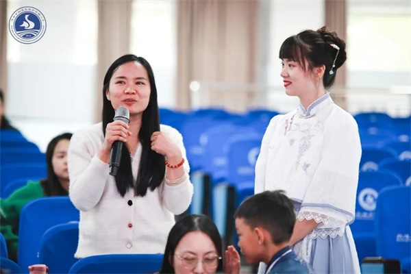互动体验环节,美术组陈红老师搭建沟通桥梁,学生和家长们围绕规范书写、如何在家辅助孩子巩固书写规范等进行提问,与现场老师、领导深入探讨,思维的碰撞中,凝聚起家校协同培育孩子书写习惯、文化素养的共识。