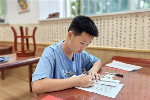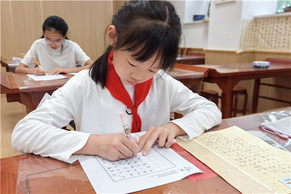 决赛现场,小选手们坐姿端正、神情专注,手握笔墨浸润经典。从二年级稚嫩工整的古诗,到六年级沉稳流畅的文言名篇,《静夜思》《三字经》《论语》等经典篇目在笔尖流淌。孩子们屏息凝神,起笔、行笔、收笔间尽显认真,一笔一划不仅书写着汉字的方正之美,更传递着对传统文化的敬畏与热爱。