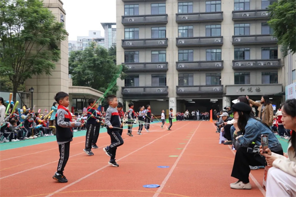近日,成都市石笋街小学校(西区)的校园里,呐喊与欢笑交织,激情与活力迸发。这是一场属于全体“笋娃”们的体育盛宴,孩子们在赛场上挥洒汗水,挑战自我,尽情享受运动的无穷乐趣。