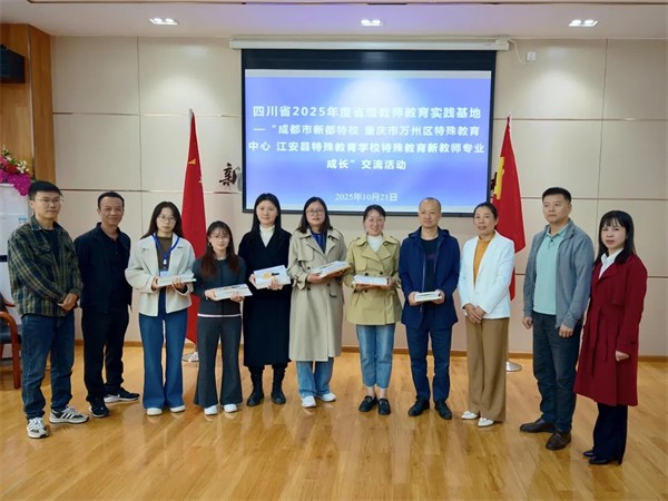 2025年10月19日至11月8日,来自峨眉山市特殊教育学校、乐山市特殊教育学校、旺苍县特殊教育学校、长宁县特殊教育学校、宜宾江安县特殊教育学校和重庆市万州区特教中心的16位优秀教师,汇聚于成都市新都区特殊教育学校(以下简称:新都特校),开启了一场为期20天、沉浸式的跟岗实践学习之旅。