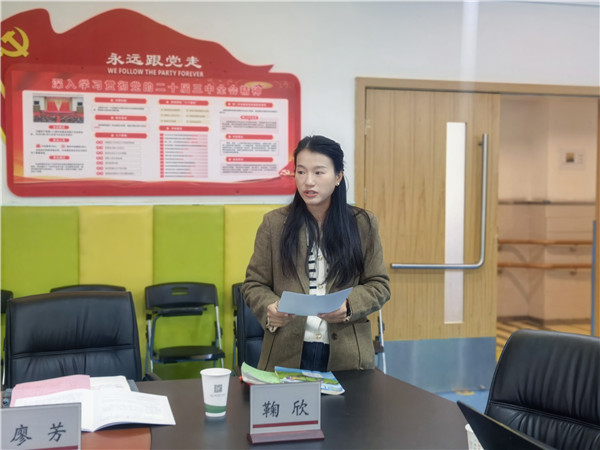 随后,鞠欣也对育德1班的现场课进行说课,从学情分析、教学设计、实施及反思,介绍如何借助IEP智能支持平台、聚焦培智课堂的实践探索。