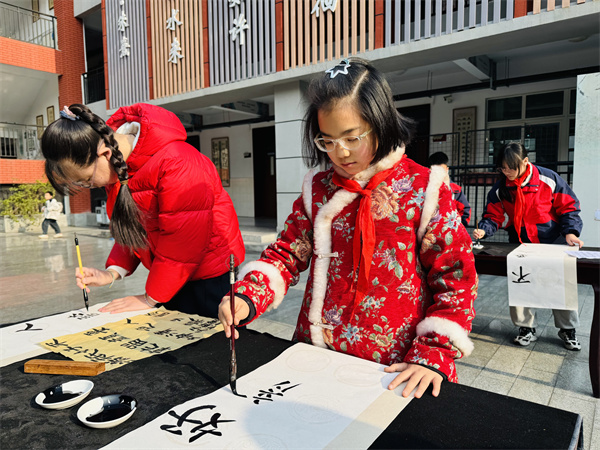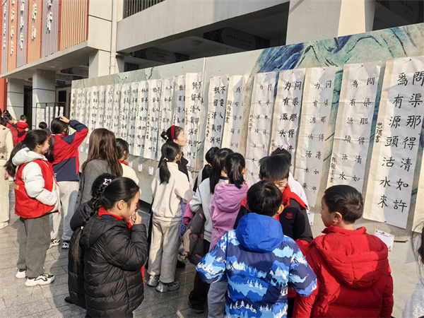 从一年级握笔、提笔的基础练习,到每周书法课堂与午间习字的常态浸润;从每月班级、廊道展示中看见成长,到每学期书法文化节日激发热情——笔墨陪伴成长,美育滋养心灵,书法教育在这里真正落地生根、开花结果。