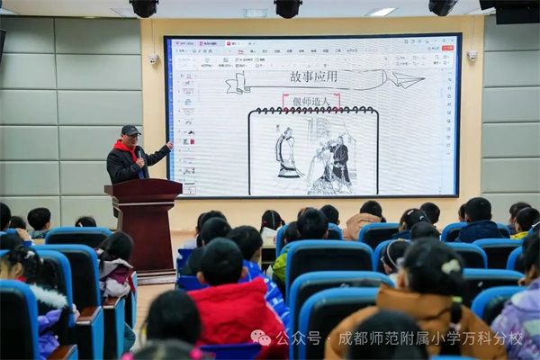 作为国家一级图书馆,成都图书馆不仅拥有丰富的馆藏资源,更长期致力于阅读推广与社会教育,尤其重视青少年阅读习惯与写作能力的系统培养。2026年1月15日,学校邀请到中国作家协会会员、一级文学创作、荣获第十届全国儿童文学奖等多项荣誉的知名儿童文学作家王林柏走进校园,以其代表作《拯救天才》为载体,为孩子们带来了一场富有层次、互动与实践性的写作分享活动。