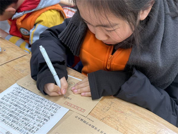 孩子们认真书写格式规范的信件——工整的落款、真挚的问候,字里行间满是郑重与期待。孩子们介绍自己,分享课间的欢笑,描绘家乡的美食,校园的四季……那些细碎的美好,都成了想说给远方朋友听的小秘密。
