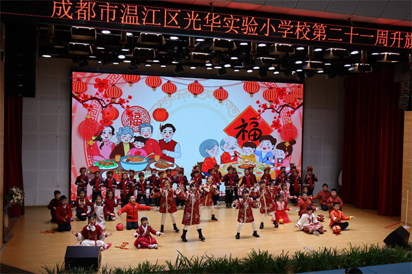冬日暖阳映校园,萌娃贺岁启新程。2026年1月19日,成都市温江区光华实验小学举行第二十一周升旗仪式,全体师生以昂扬姿态迎接学期末的珍贵时光,共同感受成长的喜悦、奋进的力量与浓浓的新年氛围。