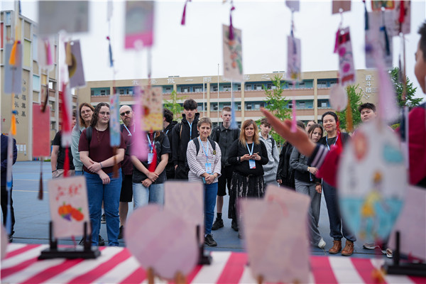 法国马尔特鲁瓦学校师生代表团从校门口出发,开启了校园参观之旅。辰居小学的同学自信大方的向他们介绍了学校的办学理念、星辰文化以及二十四节气、国际理解、版画、戳戳绣、剪纸等特色课程作品。代表团亲身体验版画、戳戳绣以及创意粘土,近距离感受手工的乐趣,他们对辰小师生的巧手与创意赞叹不已。