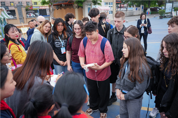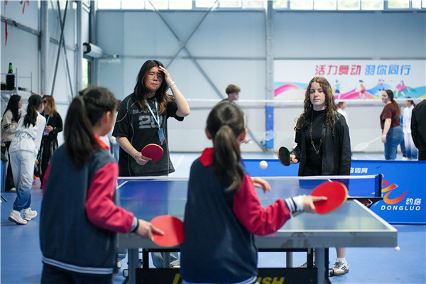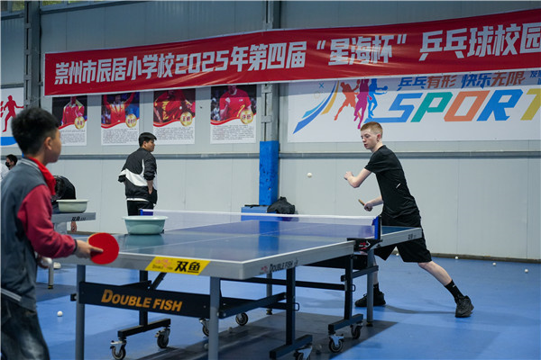 体验完空竹后,代表团对乒乓球表现出浓厚兴趣,主动要求体验,并与辰居小学的同学们切磋球技,在运动中延续中法文化交流的友谊与互动。