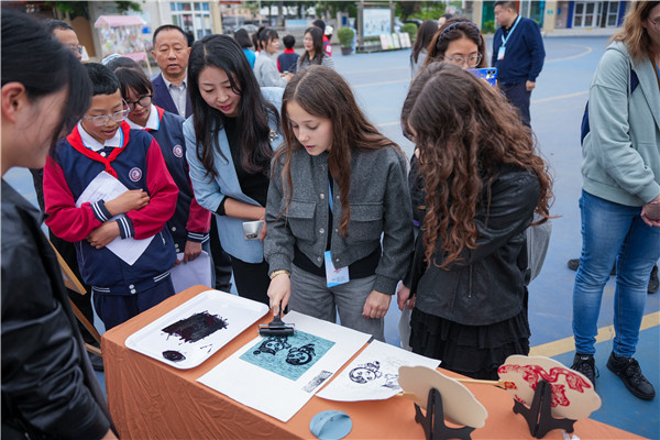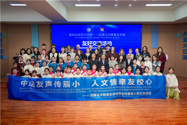 4月8日,法国马尔特鲁瓦学校师生代表团走进崇州市辰居小学校开展访学交流活动。参加本次活动的有崇州市教培中心主任张志敏、副主任王智勇、心理艺体教研室主任杨丽梅、音乐教研员石伟利,环球青少年大使计划四川中心、四川少儿电视《阳光起跑线》工作人员以及辰居小学党总支书记秦世松、校长乐伟、副校长王国庆以及师生代表。活动由周承熙、卢悦珊、郑羽馨、余沐阳、曹梓涛、韦垭萱同学共同主持。