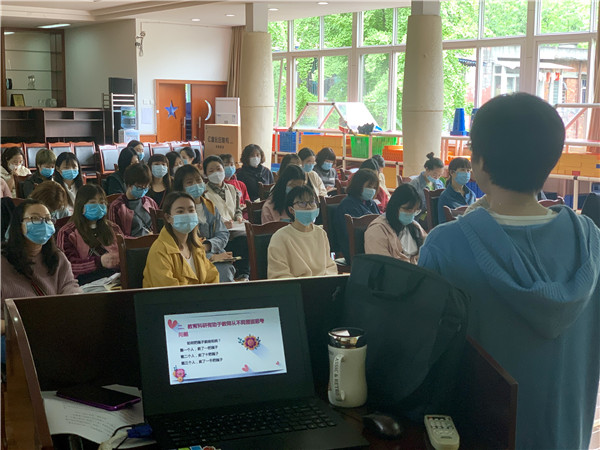 四川教育报道网4月22日讯(记者 孙林馨 通讯员 刘必瑞) 为促进幼儿园全体教师教科研能力的提升,加强教师的专业化成长,4月20日下午,成都市青羊区天府幼儿园科研室主任杨玲为青羊区天府幼儿园全体教师,青羊区天府幼儿园锦绣分园、天府新区第一幼儿园骨干教师进行了教育科研方案撰写培训活动。