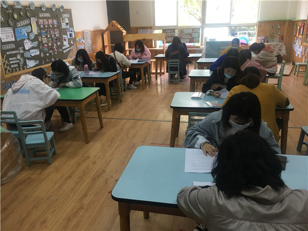 学习后,全体教师和保育员进行了“彭州市机关幼儿园防控新型冠状病毒肺炎的知识测试”,在测试过程中,老师们都认真作答,均取得了良好的成绩。