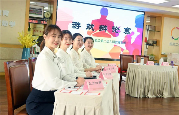 机关二幼总园执行园长李瑾表示,现场教师们活跃的思维、快速的临场应对展示了大家的专业底蕴。本次辩论不是几个人在努力,而是全体教师都参与其中,共同学习、分享观点,这是辩论赛的价值所在。同时,也希望老师们继续强化游戏的学习,丰满羽翼,做儿童发展真正的组织者、引导者和支持者。金周园区执行园长叶琳则说,老师们专注专业的场面令人欣慰又兴奋。辩论的输赢不是最终目的,而是在于通过这样的活动载体引发教师对游戏的重视,希望大家能利用这段可贵的时间加强自主学习,不断内化游戏的认知,指导老师更好的游戏观察行为,促进儿童的全面发展。
