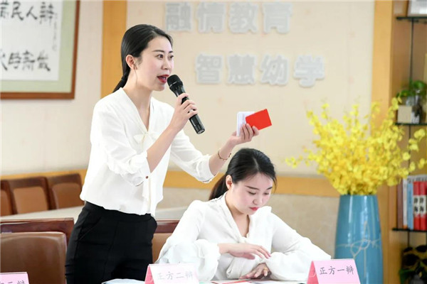 据悉,此次辩论赛由金周园区业务副园长刁雨主持,两园区管理者担任评委,科研办曹吉华老师承担计时工作,全体教师作为大众评委参与本次活动。两园区8名教师分别代表正、反两方。