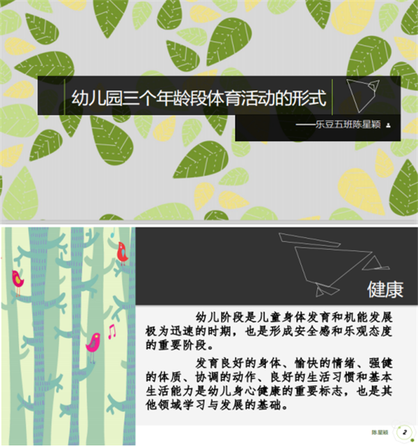 为了给老师们解惑,该园开展了《幼儿园三个年龄段体育活动形式》培训活动。活动特邀陈星颖老师做讲解。