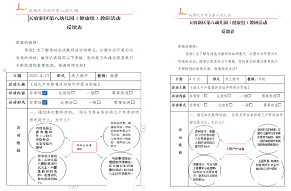 此次健康组教研活动,充分发挥老师们的主观能动性,利用可以利用的资源,将幼儿体育活动设计好、组织好,让其为孩子身心健康服务,为幼儿幸福生活打下良好的基础。