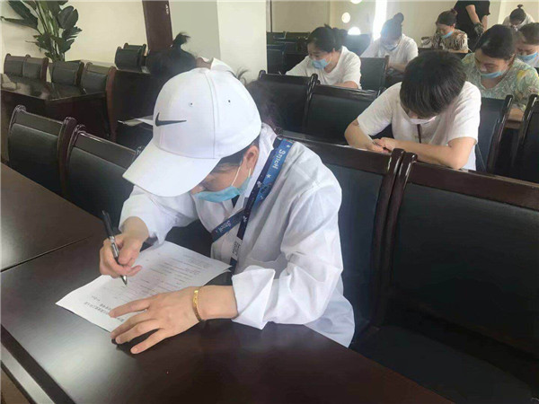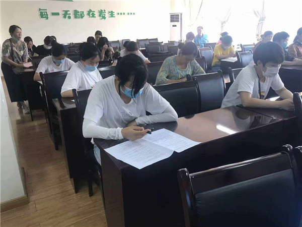 首先,胡家英主任给机幼一园五区的食堂工人分发了安全知识测试试卷,希望通过此次考试提升机幼每一名食堂工人对疫情防控安全知识的掌握。