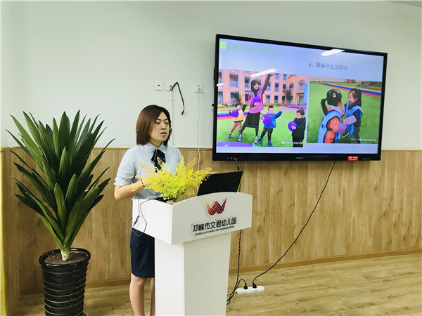 邛崃市文君幼儿园四位老师从园本教研的开展与实施,班级主题活动,幼儿个案分析等几个方面进行经验分享。