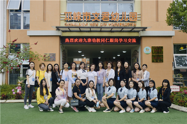 有朋自远方来,不亦乐乎!此次九寨沟县幼教同仁到邛崃市文君幼儿园跟岗学习,加深了彼此的了解和友谊,促进了教师们彼此之间的专业成长。邛崃市文君幼儿园将以此为契机,在专业的道路上再接再厉,继续前行!(孙林馨)