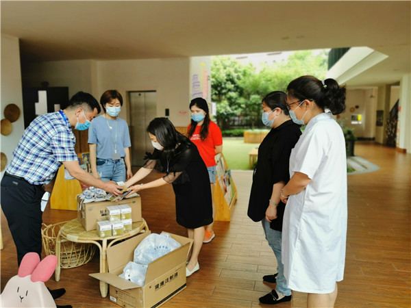 杜斌副校长就幼儿园防疫物资准备与人员安排情况、全体教职员工及幼儿的健康状况检测工作、对出现疑似感染症状人员的应急处置流程等进行了现场指导。当天,教师和幼儿也收到了杜斌副校长送来的“防疫香囊”和预防药品,周倩园长代表五幼培风表示了感谢。