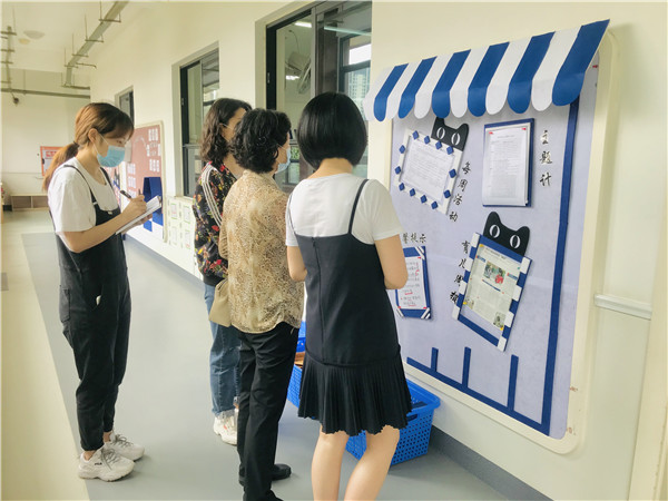 李兰菊督学查看了大班幼儿入园后的活动情况、班级情况和家园沟通栏的信息。查看了园内新增区域的安全情况及后续安排。同时也对即将来园的中小班幼儿的后续工作安排进行了解。