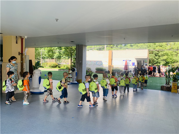 有序离园,安全回家。离园前,老师给每位幼儿测量体温,佩戴口罩,有序组织幼儿排队到校门口指定区域,待家长来接。