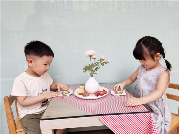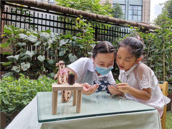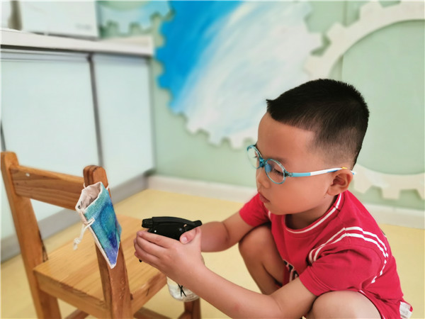 首先,老师为孩子们讲解了关于端午戴香囊的习俗、怎样做香囊、香囊里面包裹的中药等知识。随后,孩子们根据不同的年龄段分别采用不同的方法制作香囊:小班幼儿染一染,中班幼儿画一画,大班幼儿缝一缝,一个个玲珑可爱的各色香囊就做好了。接下来,孩子们初次尝试了碾制草药的过程,将艾叶放于药碾子中,“到底是用手碾还是用脚碾省力?”“草药闻起来感觉怎么样?”“药碾子像什么?”在这个过程中,孩子们自主生成了一系列的问题,兴趣和探索欲就此萌芽。最后,将碾好的草药装于香囊布袋中就大功告成了。