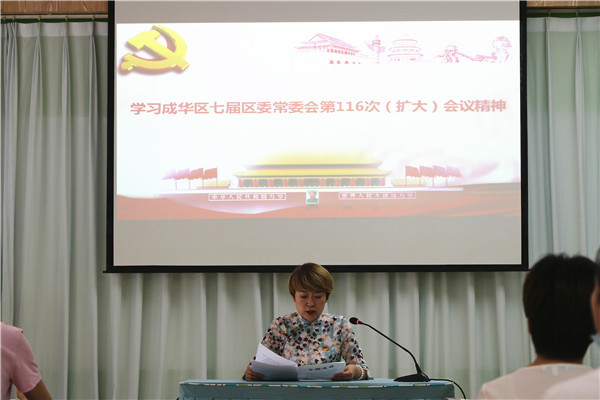 活动伊始,在园长冀娜同志的带领下,与会教职工共同学习领会2020年6月15日成华区召开七届区委常委会第116次(扩大)会议的重要讲话。赵春淦书记在讲话中谈到了成华区过去的成绩和未来发展的方向,作为成华区的一员,作为一名教育工作者,要不忘教育初心,牢记教师使命,做好本职工作,为建设“天府成都·文旅成华”做出应有的贡献。