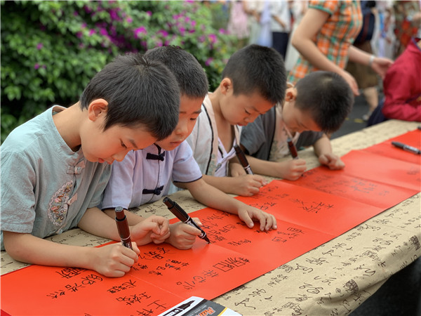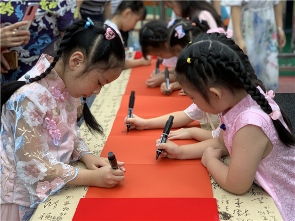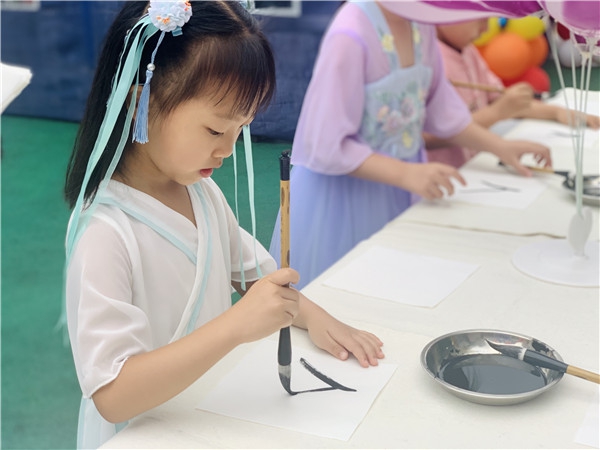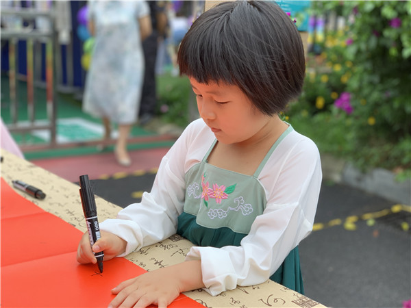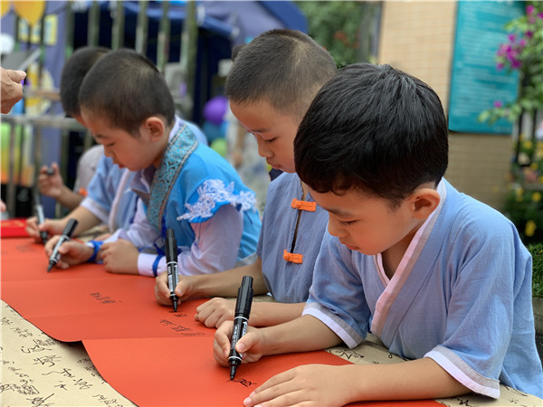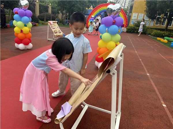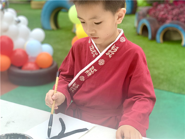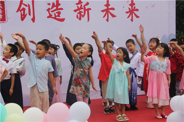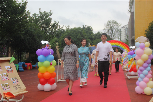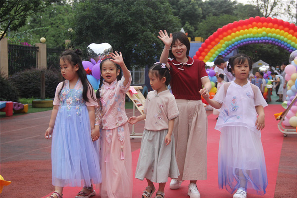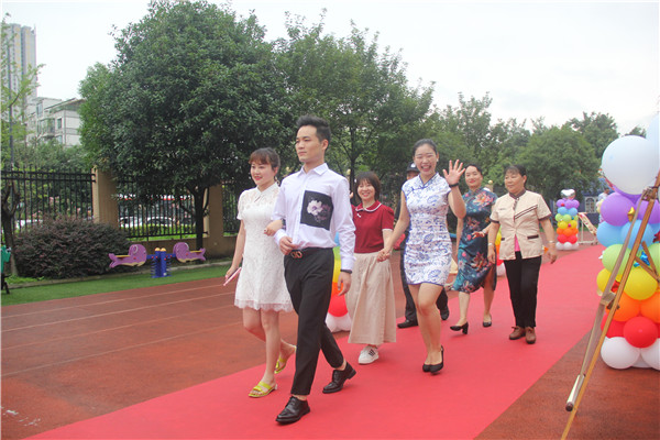 长长的红地毯,犹如一条梦想大道,行政、后勤团队、小朋友和老师们穿着中国风元素的衣服迈向红毯,孩子们脸上藏不住自信的笑容,一步步坚定的步伐是他们对未来最勇敢的期许。