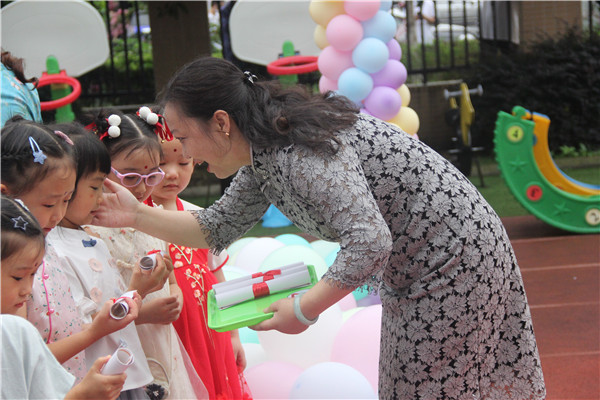 园长妈妈满含深情地说着这三年来家长与老师们的辛苦付出,孩子们的成长与改变,在蕴含着满满的爱和祝福的话语中,鼓励着孩子们走向更美好的未来。当孩子们手捧毕业证书的那一刻,意味着幼儿园生活的结束,小学生活的开始。