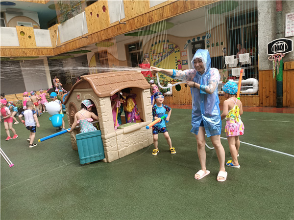 七月里的风是懒懒的,连云也都变得热热的。在这样炎热的夏季中,不玩点儿水怎么痛快?7月6日,成都市第十九幼儿园(以下简称:十九幼)的宝贝们享受着夏天的狂欢,校园里充满着小朋友们的欢笑声、尖叫声和水声。所有的声音汇聚在一起,形成一首“欢乐的交响曲”!