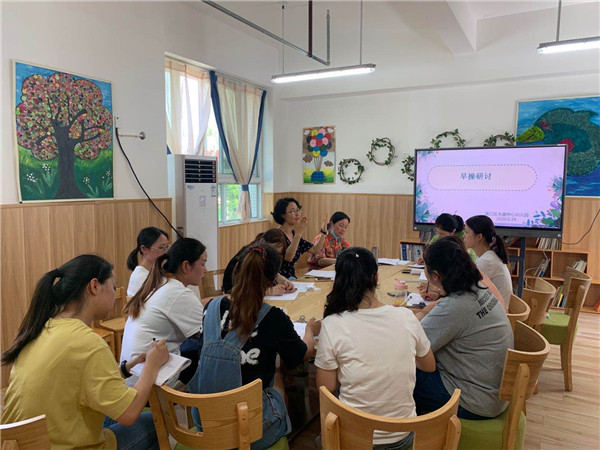 在早操观摩活动后,各年龄段的老师在赵园长和代副园长的带领下进行了早操观摩后的教研活动,赵园长提出,还可以根据实际的环境,让幼儿与环境充分互动起来。合理利用墙边的小路、台阶、长廊以及木柱等区域开展各种走跑活动。同时代副园长也提出,本次早操音乐根据幼儿年龄特点来选择,从幼儿的角度出发,选择幼儿真正喜欢的音乐,同时希望再将器械的作用发挥的更大一些。随后老师们也纷纷发表了自己对本次早操观摩的看法。