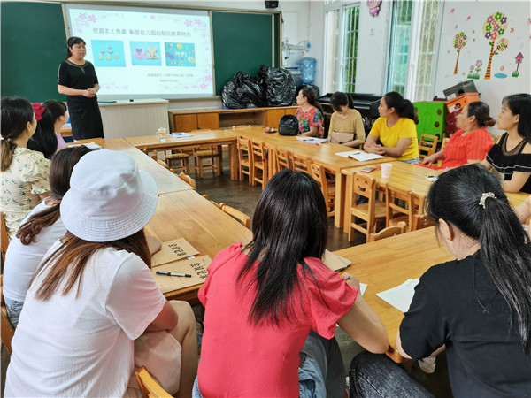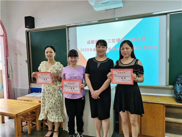 2020年7月16日,成都高新区三岔镇中心幼儿园开展了一期一次的自制玩教具比赛。活动共分为三个流程,一是园长方红梅组织开展了《挖掘本土资源彰显幼儿园自制玩教具特色》的专题讲座与研讨活动,以帮助教师进一步深刻理解自制玩教具的意义、注意事项及指导思想;二是教师分别展示自制的玩教具,并做演示与讲解,各类自制玩教具特色各异,好玩有趣,彰显了教师们的智慧与心灵手巧;三是教师做互评,评选出优秀作品并颁奖。
