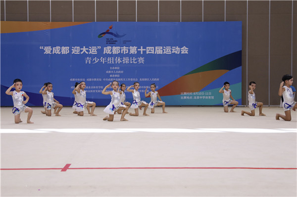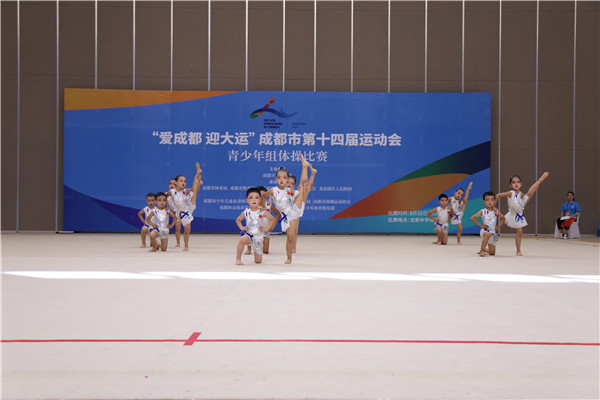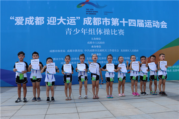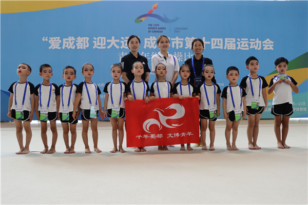 成都市实验小学附属幼儿园万家湾分园(以下简称:实小附幼万家湾分园)自接到成都市第十四届运动会的相关通知以来,积极参与运动员选拔、训练工作,并于2020年8月10日在成都市龙泉中学参加成都市第十四届运动会青少年组体操丁组规定套路体操项目,取得16.93分的好成绩,位列少儿丁组规定套路体操项目第四名。