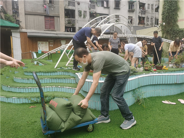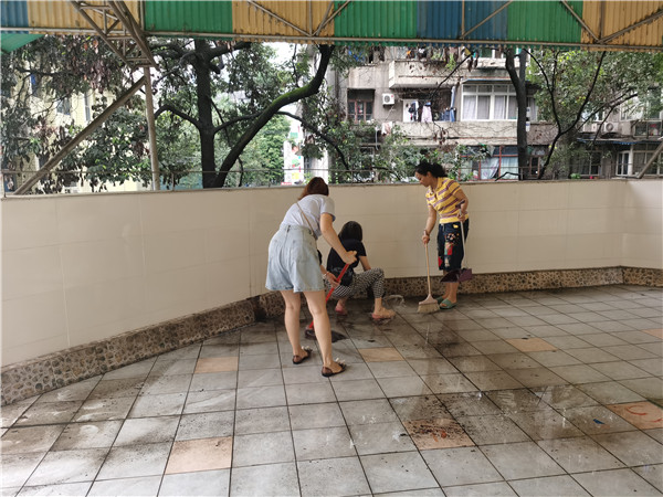 2020年8月11日-13日,成都市遭大暴雨袭击,城市内涝严重,成都市第五幼儿园(以下简称:成都五幼)园区内多处积水,学校立即启动防汛应急预案,后勤团队在闵艳莉园长的指示下,在后勤主任马灿的带领下于12日上午奔赴岗位,冒雨进行抗洪抢险。