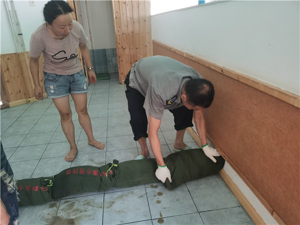 面对险情,五幼后勤团队人员分工明确,团结协作,有条不紊。先查找积水原因,疏通排水孔,清理积水。然后铲沙,装袋,搬运,垒堤。同时,请来施工队检查漏水情况,商量后续维修事宜。虽在大雨中行动,雨水淋湿了衣襟,但大家毫无怨言,干劲冲天,用最短的时间控制住了大暴雨给幼儿园带来的险情,并最好地诠释了五幼人的众志成城。