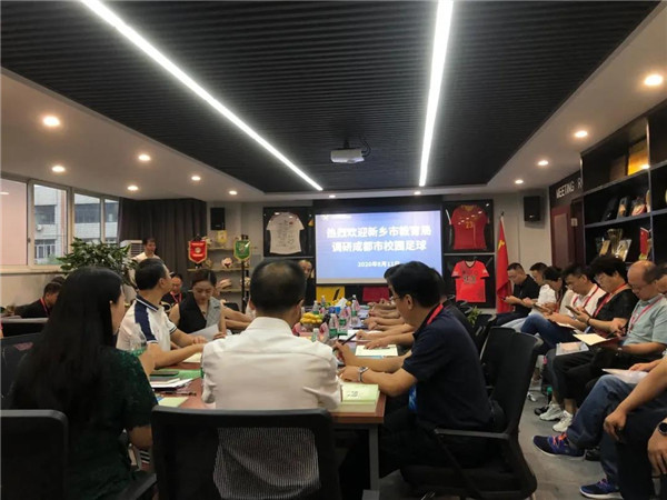 2020年8月11日,成都市教育局、成都市足球协会接待河南省新乡市教育局、新乡市足球协会到访。成都市教育局体卫艺处处长、成都市校足办主任吴小刚,中国足协执委、成都足协主席辜建明,成都市足球协会专职副主席刘刚,成都市金牛区教育局副局长孙丹出席会议并讲话。成都市金牛区锦西幼儿园受邀参会,并作《幼儿足球组织与指导》专题交流。