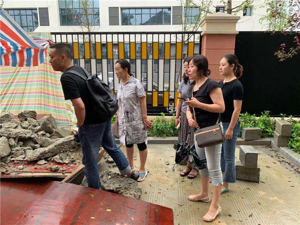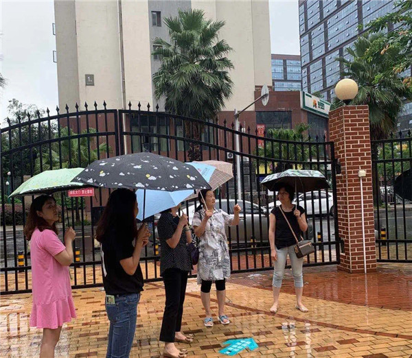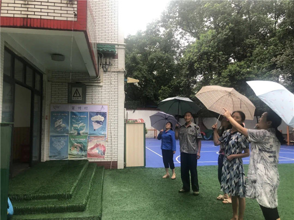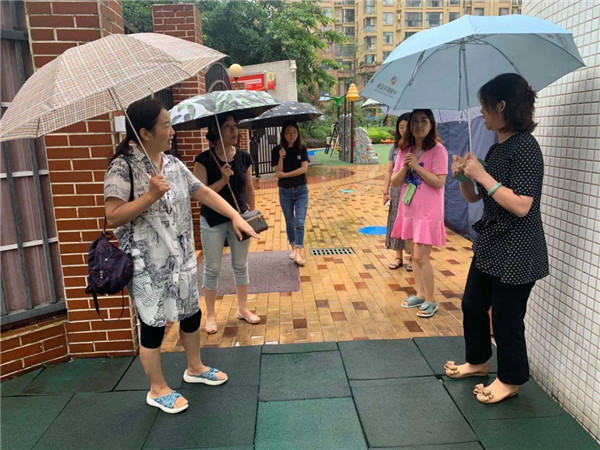 2020年8月11日,成都市气象台发布了暴雨橙色预警信号。为切实加强汛期校园防汛隐患排查工作,8月12日,成都市实验小学附属幼儿园(以下简称:实小附幼)学前教育集团党支部书记、园长谢容,副园长郭芳及青羊区教育局安全科廖晓明老师带领检查小组,对实小附幼集团六个园点进行了拉网式防汛隐患排查。