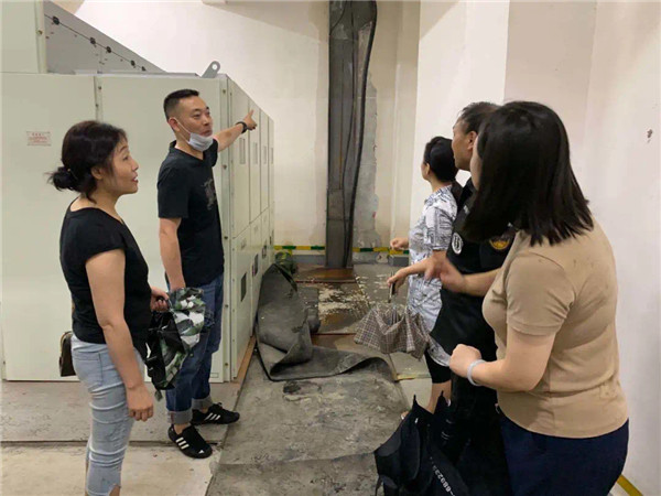 检查组一行重点对各个园点的操场、地下停车场、地下雨水回收机房、地下消防水泵房、弱电机房、配电间、墙体、电路、教学楼及楼顶等区域的排水管道、排水口进行了全面排查,并指导相关人员对有堵塞、漏水、渗水的地点及时进行疏通和处理。