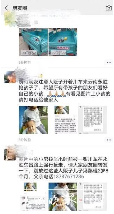该事件发生后,孩子被拐的内容,在朋友圈中引起了大量的转发。“果然城市孩子不好上手,把手伸到了小县城和农村,放养的孩子马虎不得这年头。”一网友在转发寻孩内容时写道。