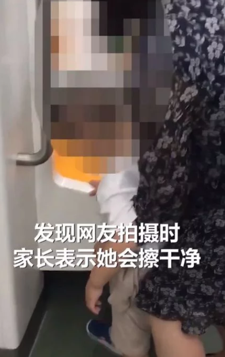 8月24日,陕西西安。有网友爆料在西安地铁四号线,有家长带着一名男童在满是乘客的地铁车厢内当众小便。发现网友在拍摄视频时,家长表示她们都会擦干净。