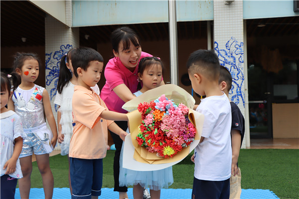 万家湾分园的开学第一课以“爱成都 迎大运”、“欢迎新朋友”、“防疫小活动”三个板块组成。孩子们首先进行了庄严的升旗仪式,随后观看了由体操运动代表队带来的在成都市第十四届少儿体操运动会中获得好成绩的体操表演。新生和大班的哥哥姐姐们也进行了温馨的互动。最后,全体师生一起唱起防疫儿歌,从开学第一课牢固树立起坚持预防为主的思想。