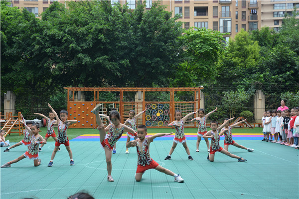实小附幼的12名大班运动员以饱满的热情、矫健的动作,向小朋友们展示了“高颜值”的体操表演。这支小运动员队伍参加了暑期“成都市第十四届运动会”,获得了评委的一致好评,收获了道德风尚奖。
