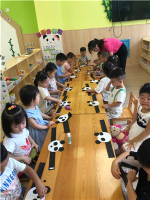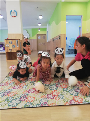 小二班和小三班的小朋友们分别以“蓉宝送吉祥”、“熊猫滚滚”为主题,进行了钻爬体育活动和手工制作熊猫头饰,既培养了幼儿的动作的灵活性、协调性,又加强了幼儿的身体素质。