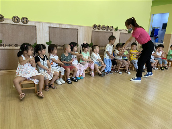 高坎分园小一班和小四班的孩子们在老师的带领下学习如何做好安全防护。