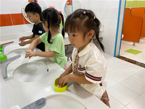 文翁分园中班的小朋友们在假期中依然坚持了七步洗手法,保持安全卫生。