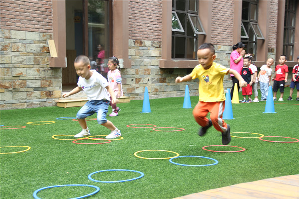 在“我运动,我健康,我快乐”的运动员口号响应下,小朋友们热血沸腾,也开始了小小运动员的体验活动。
