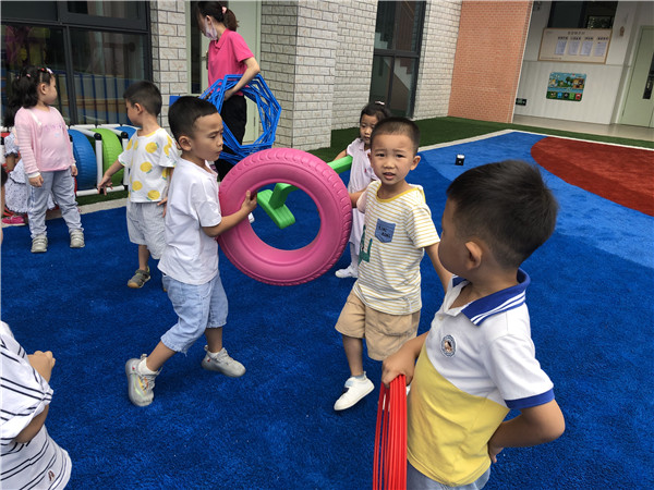 为了让新入园的孩子们缓解焦虑和不舍。分散孩子们的注意力,马厂坝分园的老师们精心准备了好玩儿的体育游戏。在游戏中,孩子们玩儿的不亦乐乎。