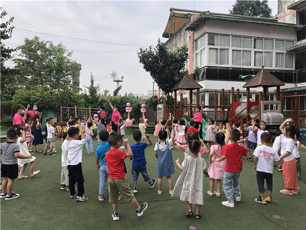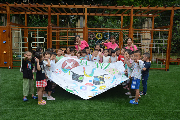 为认真贯彻落实“爱成都,迎大运”主题教育活动,提升师生思想道德素质,创建校园文明建设,凝聚创建文明成都师生共同参与的意识,提升师生共同参与建设文明校园,创建文明城市的热情,2020年9月1日,实验小学附属幼儿园(以下简称:实小附幼)学前教育集团旗下共六个幼儿园开展了“爱成都,迎大运”的开学第一课活动。